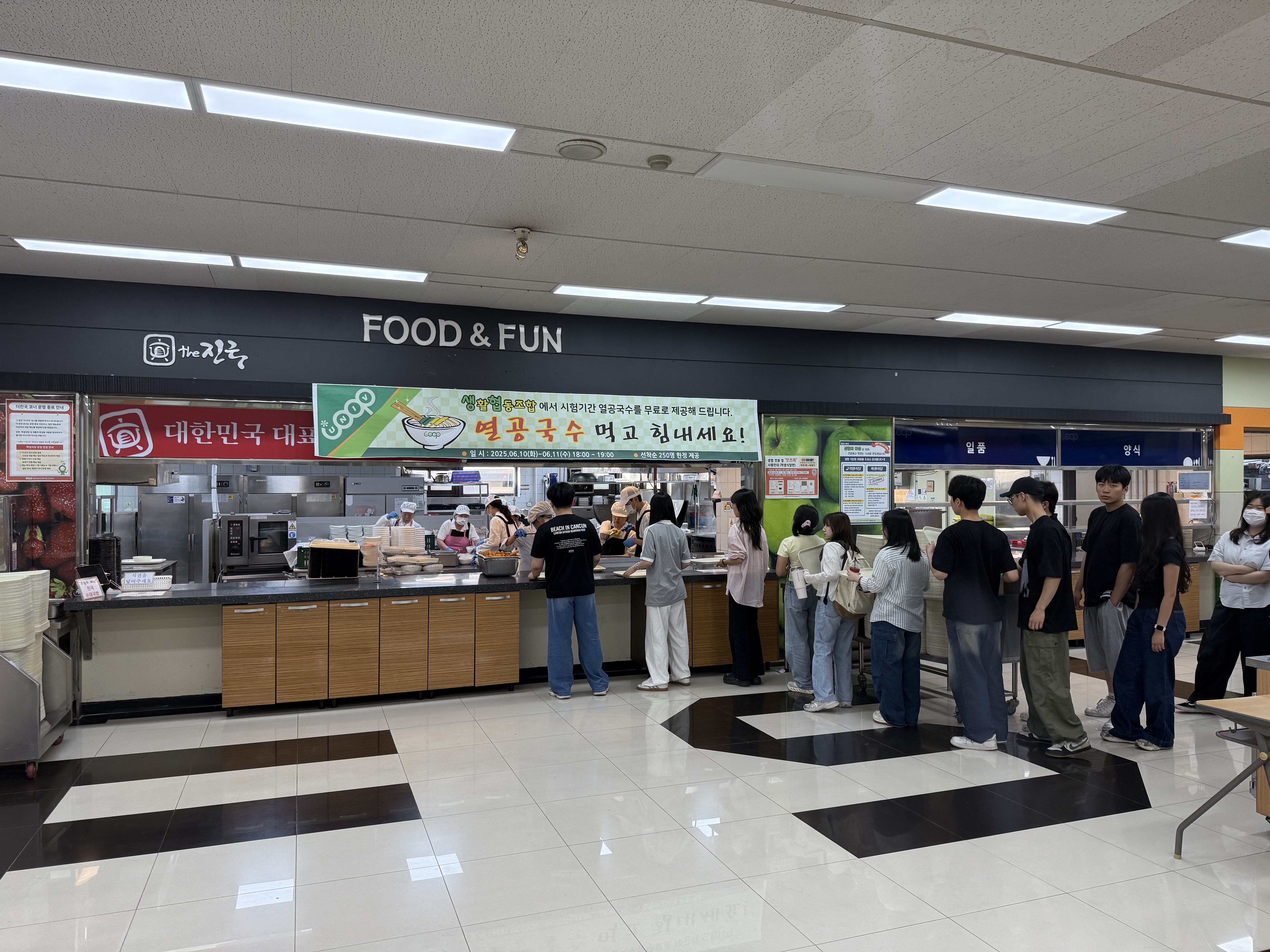 한국외대생협, 기말고사 열공국수 행사 진행해한국외대생협은 6월 10일(화)~11일(수) 이틀간 기말고사 응원 ‘열공국수’ 나눔 행사를 열었습니다. 생협 학생위원회 주최로 오후 6시부터 후생관 식당에서 냉모밀·칼빔면 등 총 600여 인분의 식사를 제공하며, 지친 학생들에게 따뜻한 응원을 전했습니다. |
